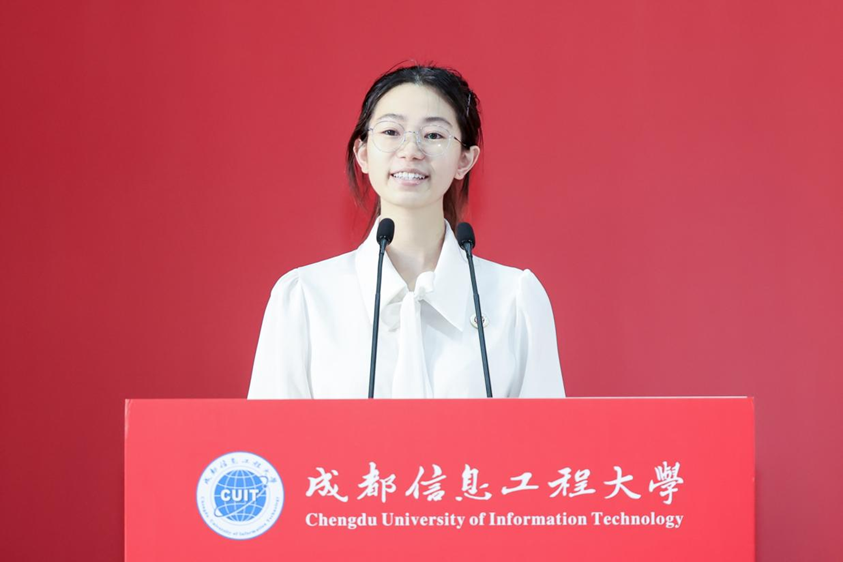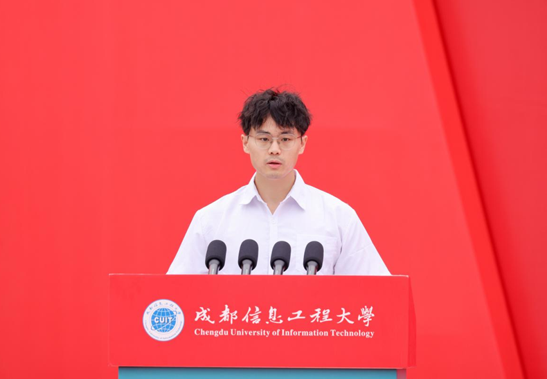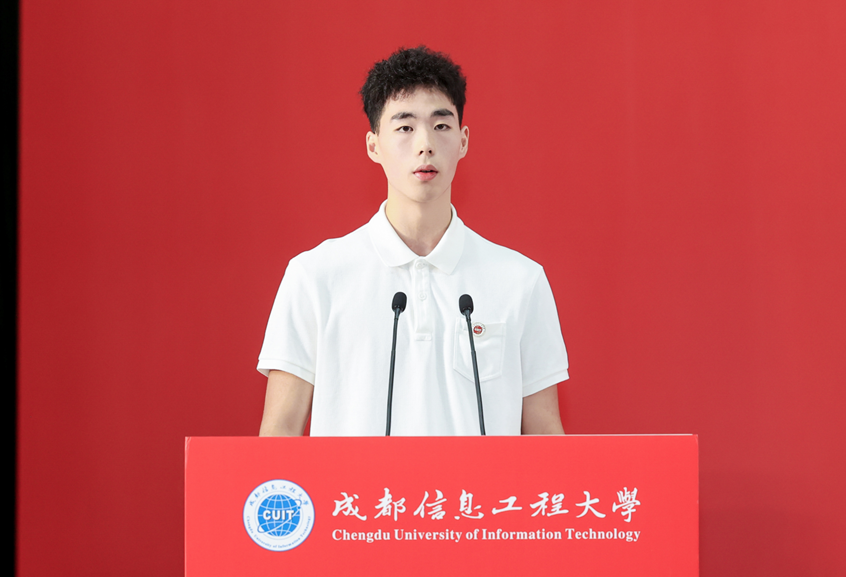 本科新生代表、管理学院魏子越同学分享了与成信大特殊的“缘分”,母子同校求学的历程令他倍感荣幸。他号召全体新生牢记“强国有我”的信念,传承成信精神,用青春谱写不愧于时代的华章。