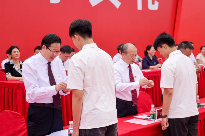 校领导为新生代表佩戴校徽