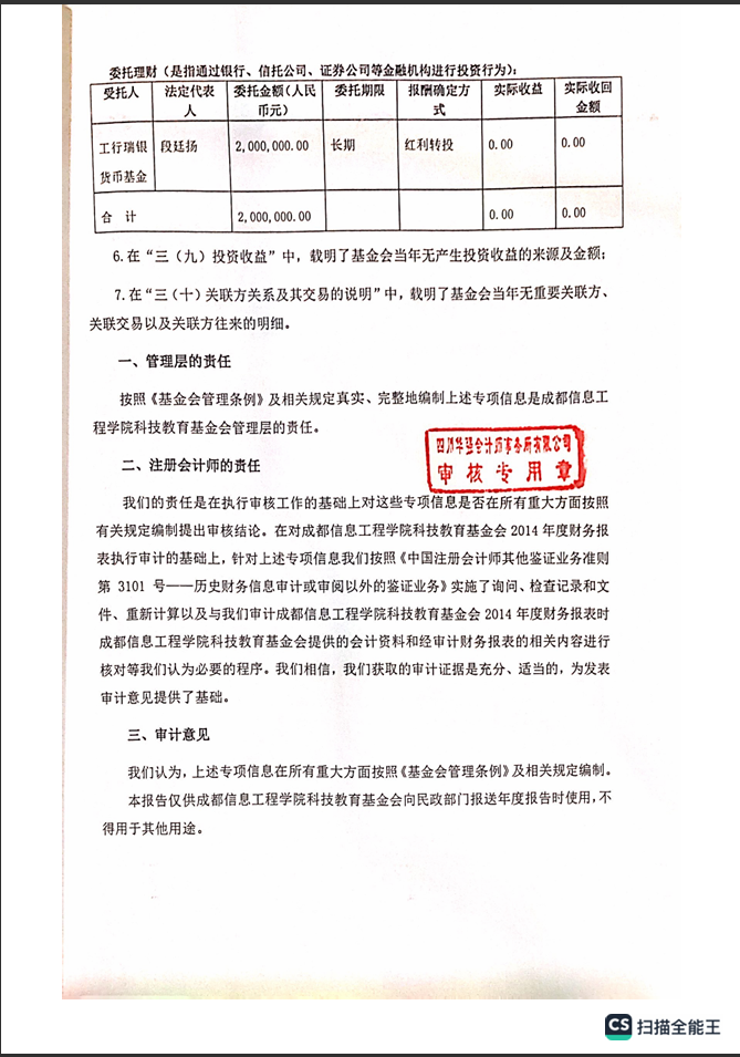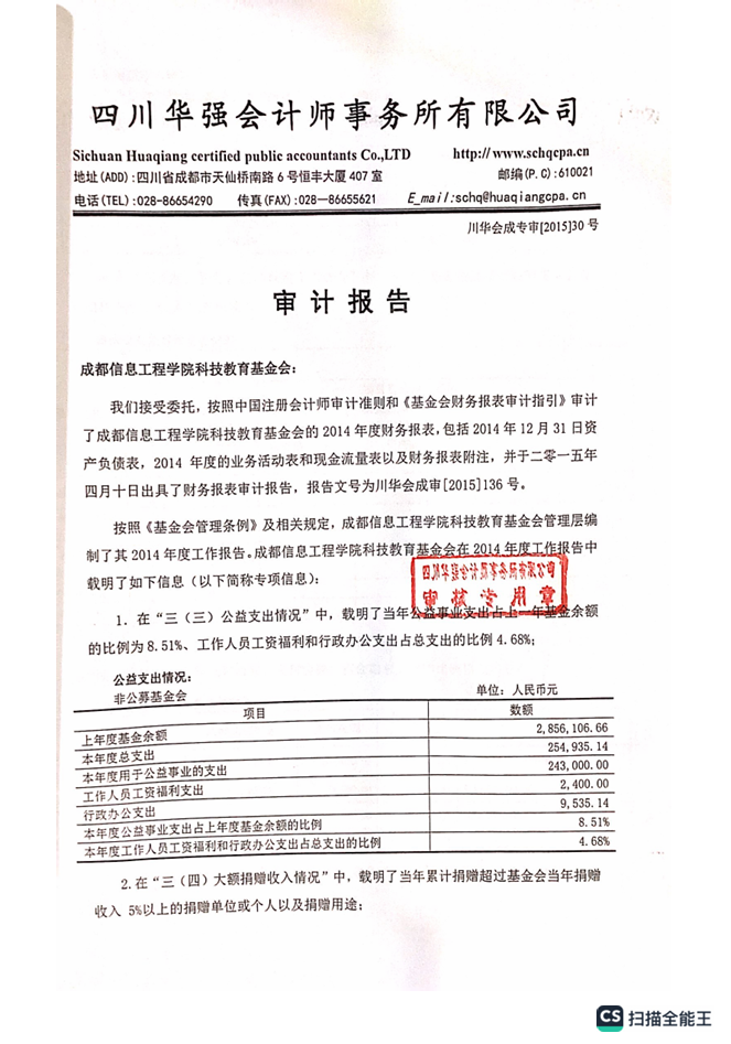 基金会2014年专项信息专项审计报告