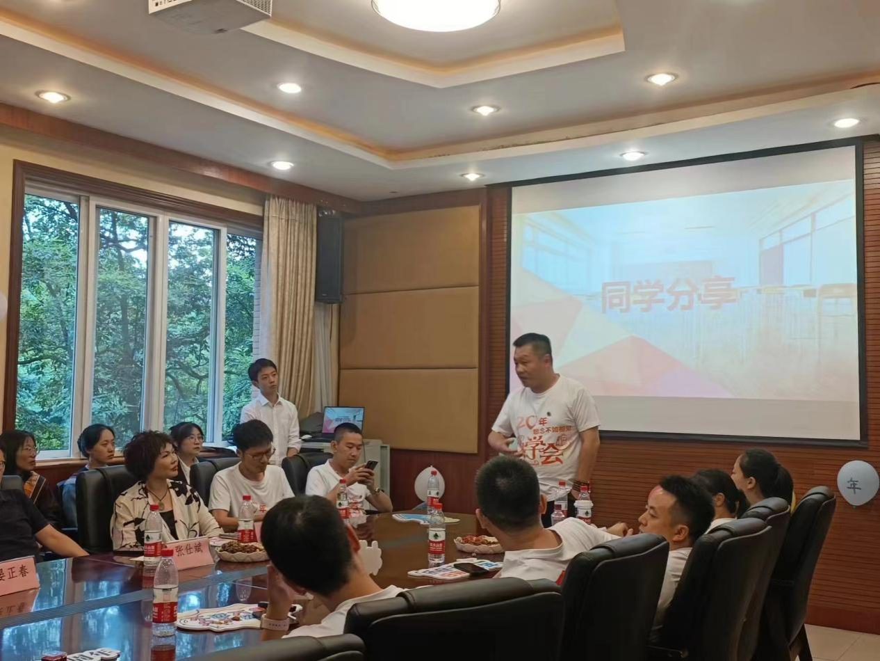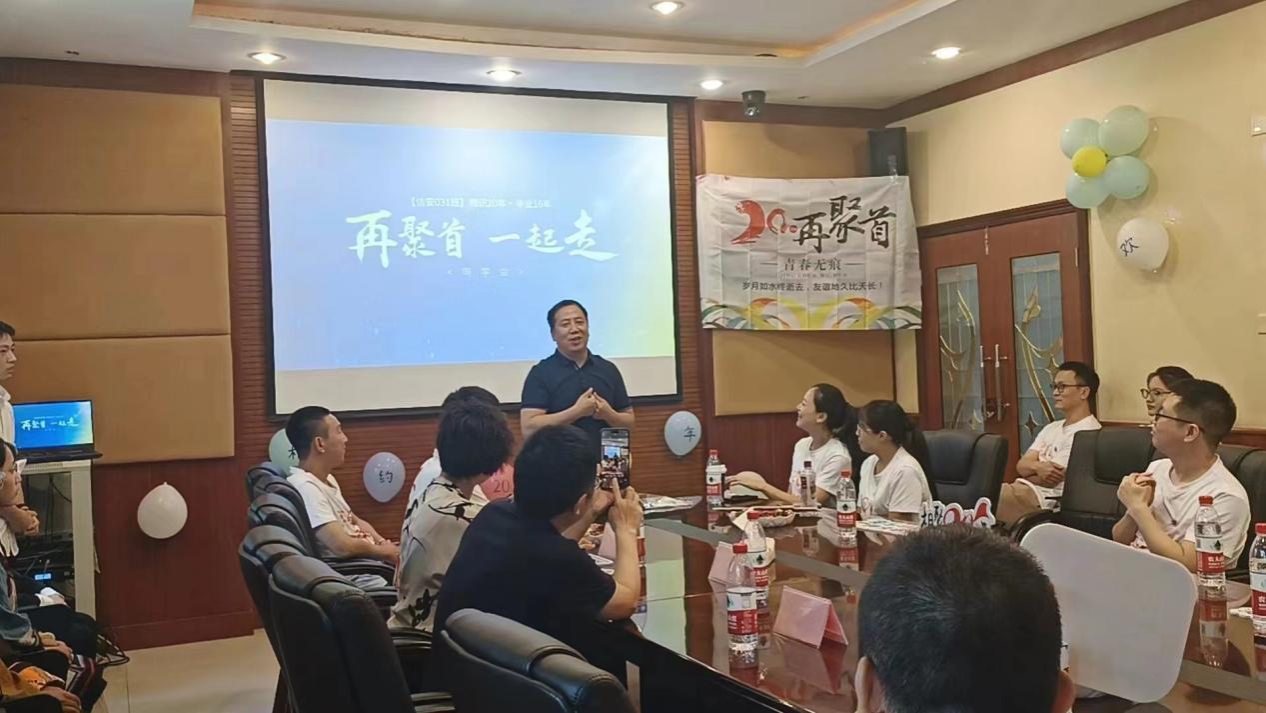 随后,在崇德楼二楼会议室举行了“再聚首,一起走”主题班会活动。参会人员一道观看了23 级学弟学妹们精心制作的校园视频,聆听了给03级师兄师姐的献词,欣赏了他们合唱表演。03级校友也展示了宝贵的同学录,带来了他们当年拍摄的校园样貌,直观的让大家感受到学校20年间翻天覆地的变化,体会到母校在不断地变化中发展壮大,行走在基础设施优越与办学实力并行的前进之路上。
