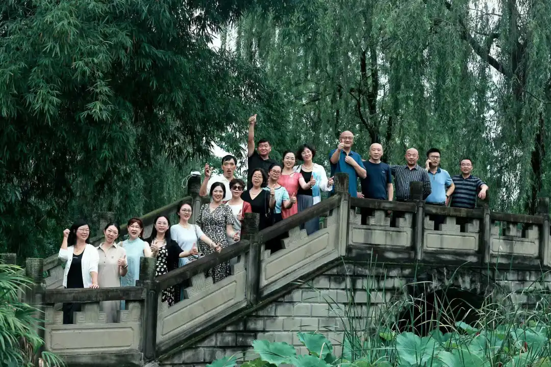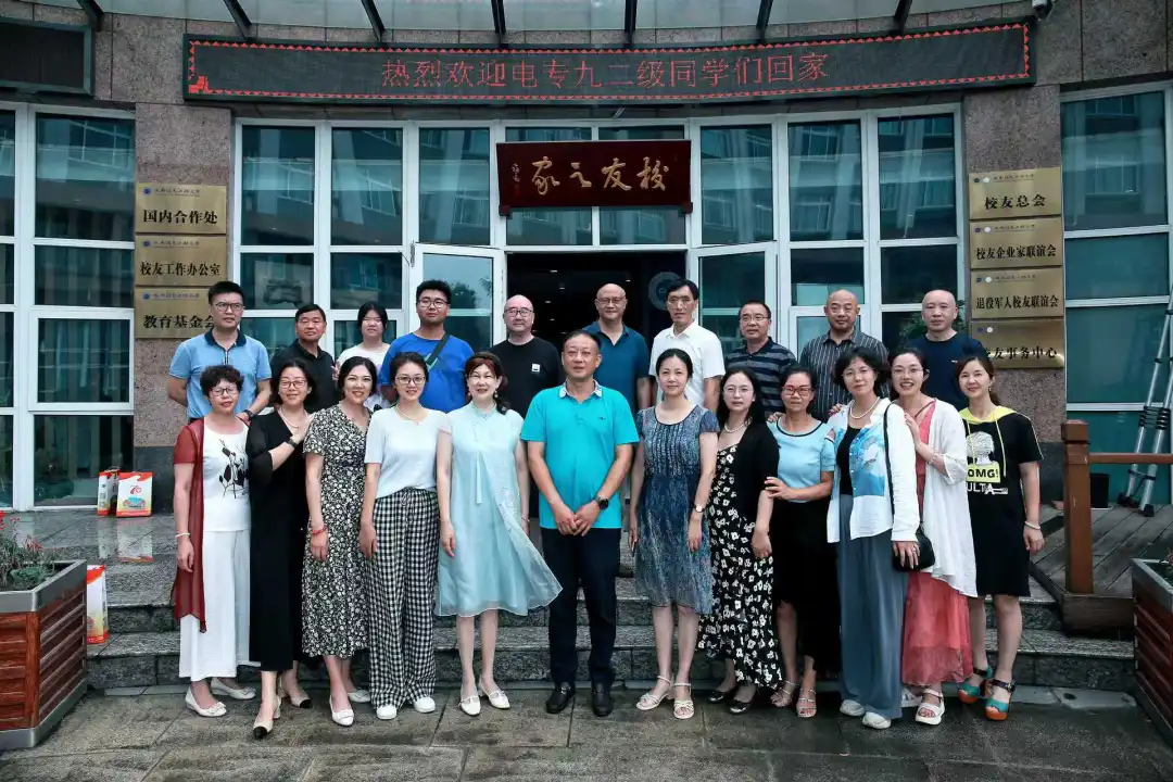 7月20日一早,校友们齐聚学校,在学校大门口合影留念。